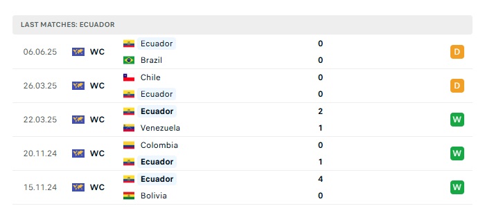 Tất nhiên là với những thống kê trên, phong độ của hai đội chắc chắn sẽ có sự chênh lệch vô cùng lớn. Nên biết rằng trong 5 trận gần nhất của Ecuador, họ được ghi nhận đã bất bại với 3 chiến thắng và chỉ hòa 2. Trong khi đó thì Peru lúc này đang chỉ có 1 thắng, 2 hòa và còn lại là 2 thua. Do đó, các chuyên gia đều tin rằng đội khách hôm nay sẽ có cho mình 3 điểm tại sân của đối thủ.