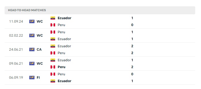 • Kèo tỷ số H2 Peru vs Ecuador: 0-2