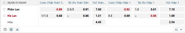 - Kèo tỷ số H1 Phần Lan vs Hà Lan: 0-1