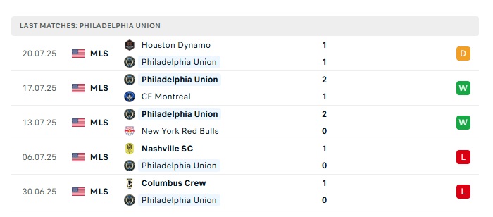 Phong độ gần đây Philadelphia Union vs Colorado Rapids