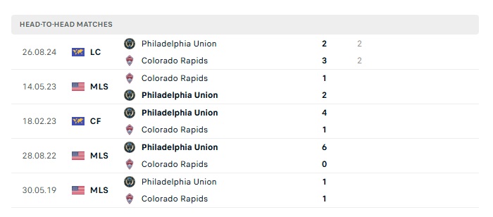 Lịch sử đối đầu Philadelphia Union vs Colorado Rapids