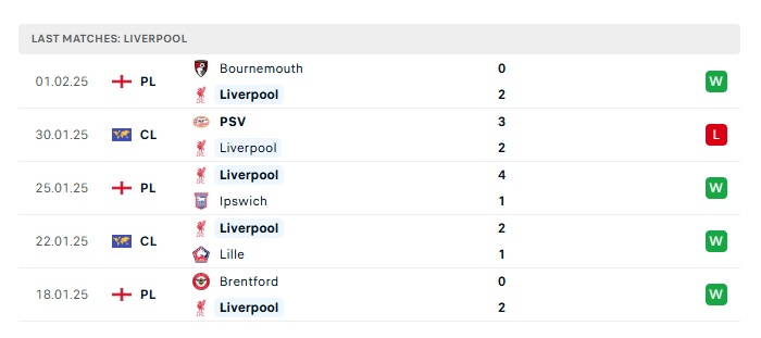 • Phong độ gần đây  Liverpool
