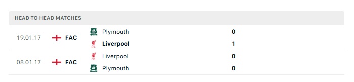 Lịch sử đối đầu Plymouth vs Liverpool