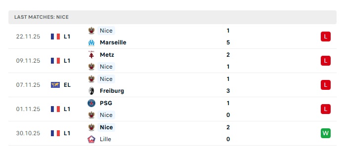 - Phong độ gần đây Nice