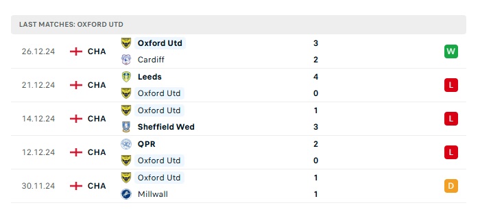 - Phong độ gần đây Oxford Utd
