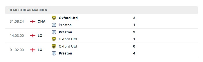 Lịch sử đối đầu Preston North End vs Oxford Utd