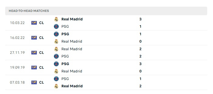 Lịch sử đối đầu PSG vs Real Madrid