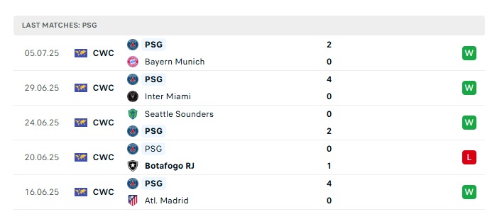 Phong độ gần đây PSG  vs Real Madrid
