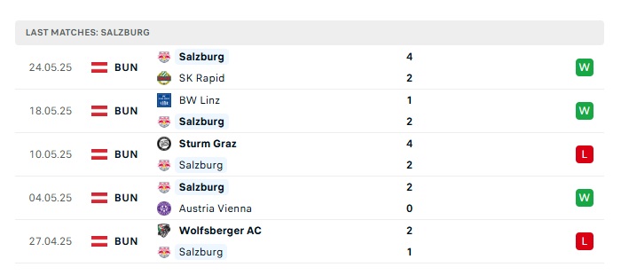 - Phong độ gần đây RB Salzburg