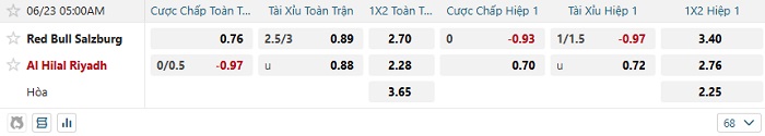 Bảng tỷ lệ kèo nhà cái RB Salzburg vs Al Hilal