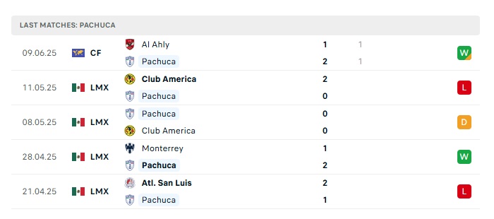 - Phong độ gần đây Pachuca
