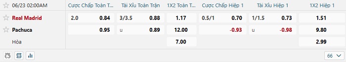 Bảng tỷ lệ kèo bóng đá Real Madrid vs Pachuca