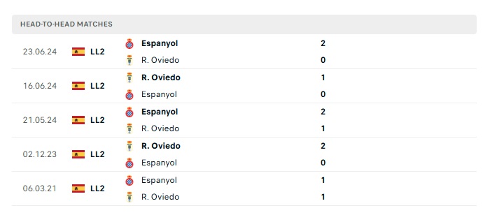 Lịch sử đối đầu Real Oviedo vs Espanyol