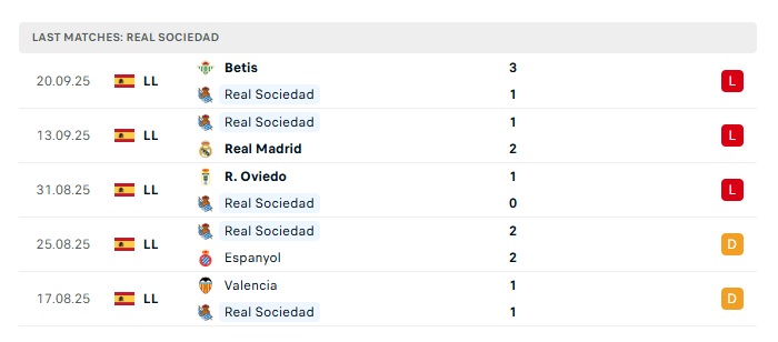 - Phong độ gần đây Real Sociedad