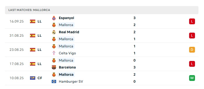 - Phong độ gần đây Mallorca
