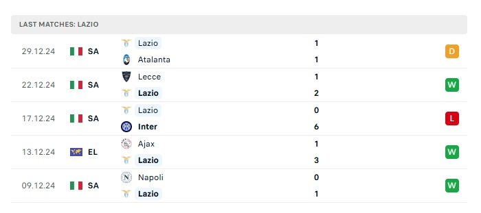 - Phong độ gần đây Lazio