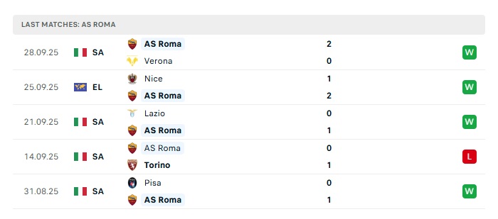 - Phong độ gần đây Roma