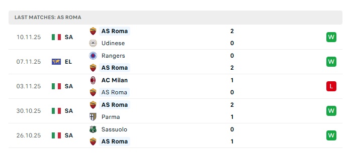 • Phong độ gần đây Roma