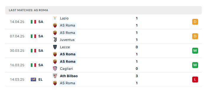 • Phong độ gần đây Roma