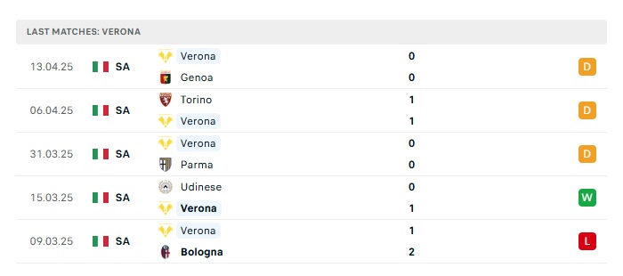 • Phong độ gần đây Verona