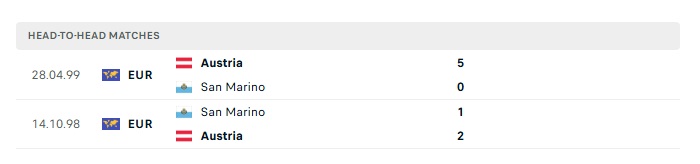 Nhìn vào sự chênh lệch lớn giữa hai đội, các chuyên gia đều khẳng định rằng Áo sẽ có cho mình 1 chiến thắng dễ dàng. Trong 10 trận đã qua của Marino, họ được ghi nhận chỉ có 2 thắng, 1 hòa và 7 thua. Còn với Áo, họ đã chơi rất tốt với 4 chiến thắng, 2 hòa và 1 thua trong 7 trận đã qua. Do đó, kèo châu Âu trận đấu hôm nay sẽ khép lại với đội khách sẽ là lựa chọn an toàn nhất.