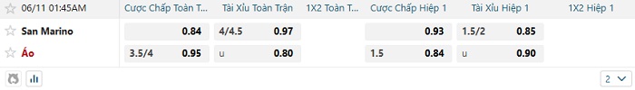 Bảng tỷ lệ kèo nhà cái San Marino vs Áo