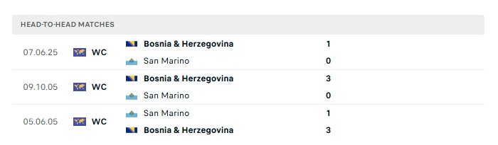 Lịch sử đối đầu San Marino vs Bosnia & Herz