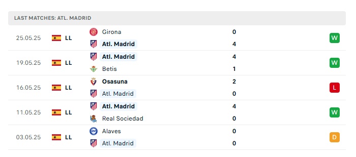 • Phong độ gần đây Atletico Madrid