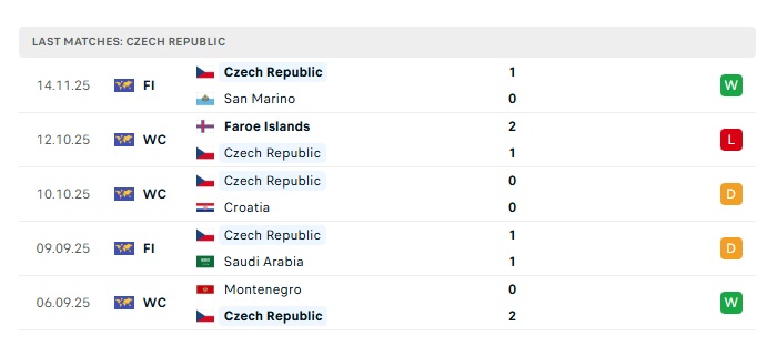Phong độ gần đây Séc vs Gibraltar