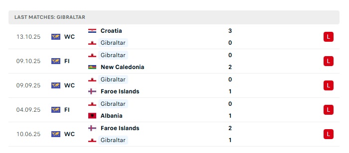 • Phong độ gần đây Gibraltar