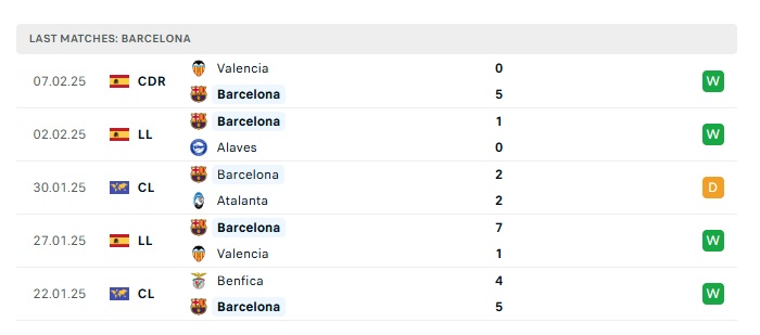 • Phong độ gần đây  Barcelona