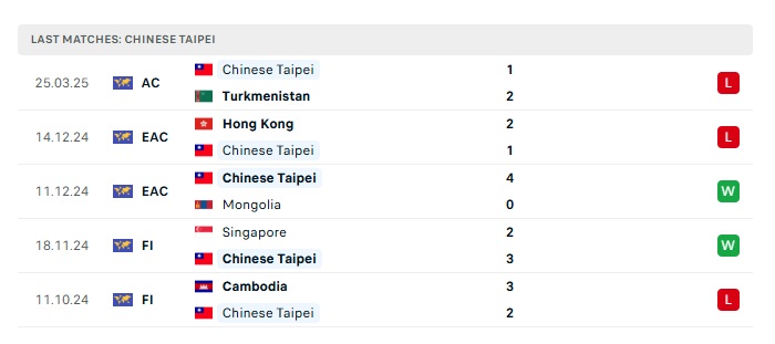 • Phong độ gần đây Đài Loan