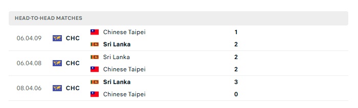 Lịch sử đối đầu Sri Lanka vs Đài Loan