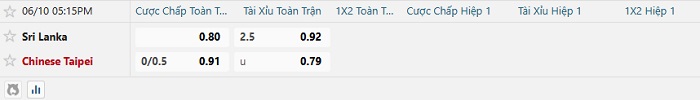 Soi kèo châu Á, kèo Sri Lanka vs Đài Loan