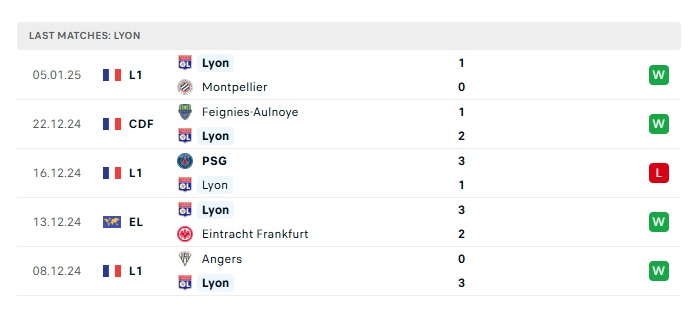 - Phong độ gần đây Lyon