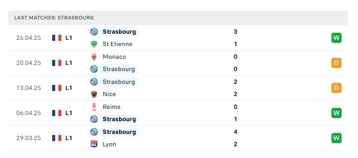 - Phong độ gần đây Strasbourg
