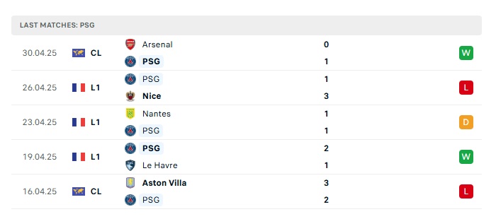 - Phong độ gần đây PSG
