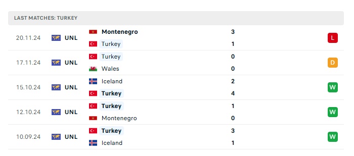 - Phong độ gần đây Thỗ Nhĩ Kỳ