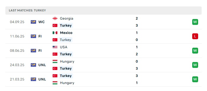 - Phong độ gần đây Thỗ Nhĩ Kỳ