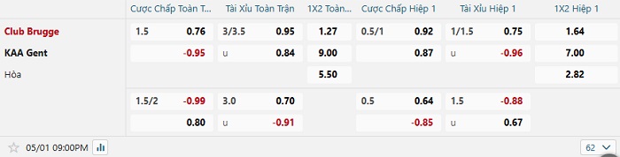 • Dự đoán tỷ số hiệp 1: Club Brugge 2 – 1 Gent