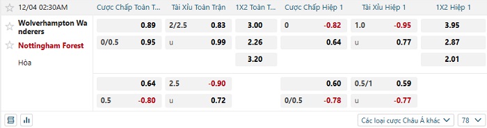 Tip kèo Châu Á full trận Wolves vs Nottingham