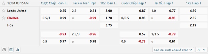 Tip kèo Châu Á full trận Leeds vs Chelsea