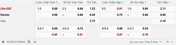 Tip kèo Châu Á full trận Lille vs Nantes