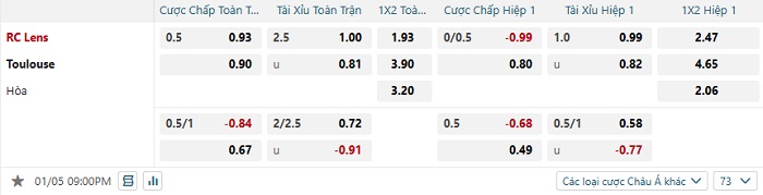 Tip kèo Châu Á hiệp 1 Lens vs Toulouse