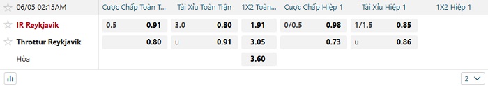 Tip kèo Châu Á full trận IR Reykjavik vs Throttur Reykjavik