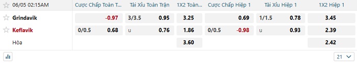 Tip kèo Châu Á full trận Grindavik vs Keflavik