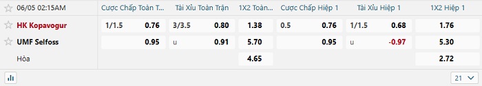 Tip kèo Châu Á hiệp 1 Kopavogur vs Selfoss