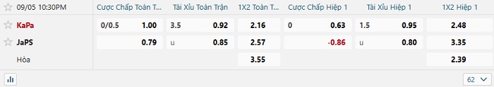 Tip kèo Châu Á hiệp 1 KaPa vs JaPS
