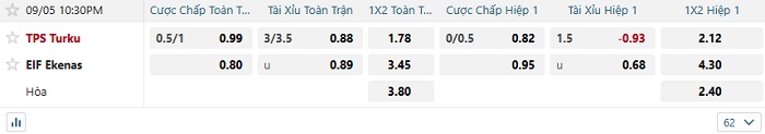 - Tip kèo cá cược Châu Á hiệp 1: Chọn TPS Turku -1/4