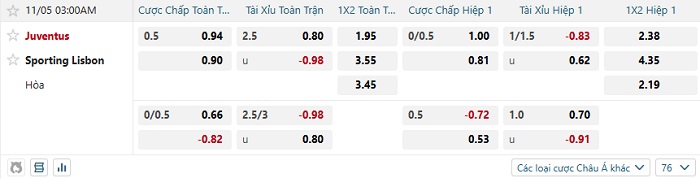Tip kèo Châu Á full trận Juventus vs Sporting Lisbon